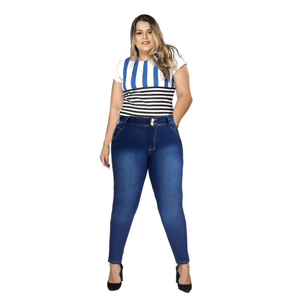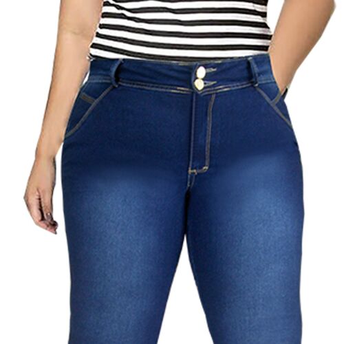 jeans grande de moda de dos botones con bolsas traseras y delanteras color azul